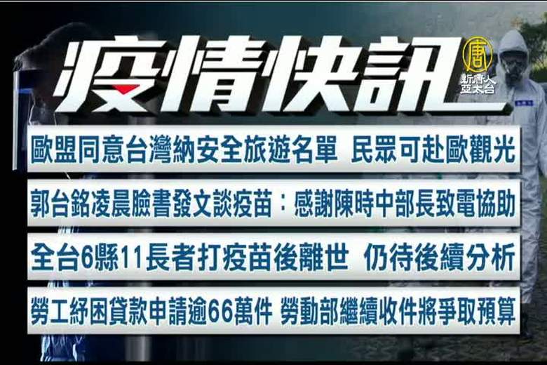 新聞一開始,先來關心台灣疫情,今天新增本土175例,是5月底以來,連續五天本土確診200例以下。同時也公佈新增19人死亡。而從擴大6類疫苗接種到現在,頻頻傳出施打後猝死的案例,指揮中心表示,和疫苗接種有時序關係,但因果關係還在釐清中。 //asset1.ntdtv.com.tw/public/uploads/assets/2021/06/17/2021-06-17-60cb3ceb61dab.mp4 長照機構|疫苗施打|指揮中心|疫情|長者|AZ|緩打潮2021-06-17 21:03:53