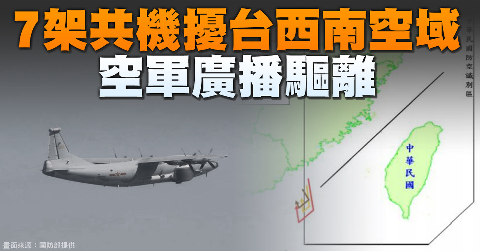 共機15日出動28架戰機最大規模擾台後,今天上午共機又來。國防部發布即時軍事動態,總共7架共機闖入台灣西南防空識別區,包括1架運八遠干機, 2架殲-16戰機,與4架殲-7戰機,空軍派遣空中巡邏兵力應對、並以廣播驅離、和啟動防空飛彈追蹤監控,這個星期,共機已經是連續第4天擾台。 //asset1.ntdtv.com.tw/public/uploads/assets/2021/06/17/2021-06-17-60cb42a571e8e.mp4 共機|空軍|西南空域2021-06-17 20:37:49