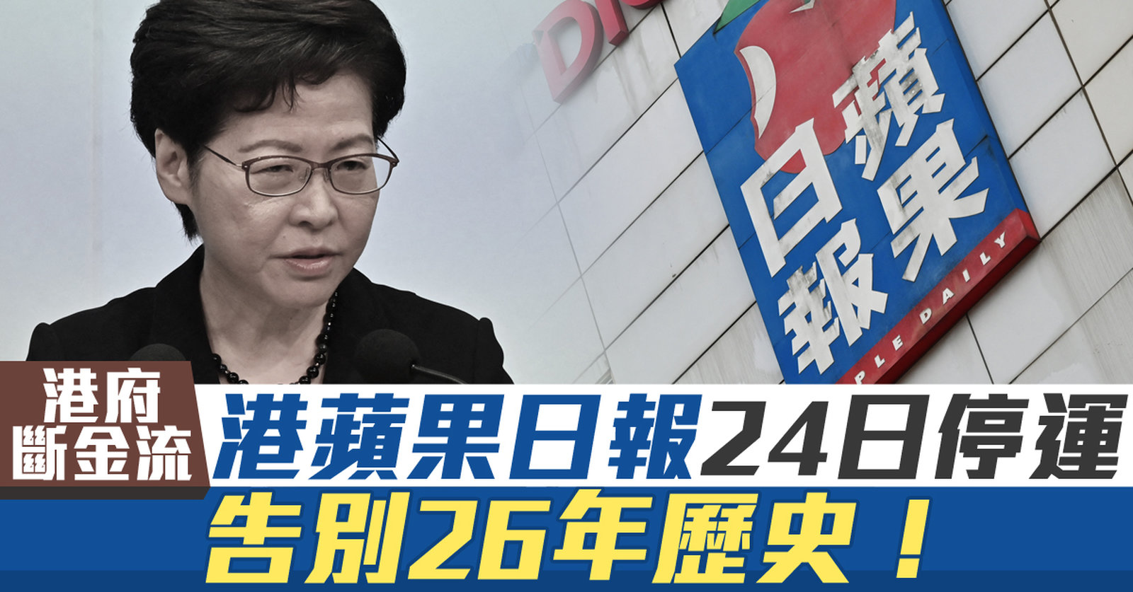 港府斷金流 港蘋果日報24日停運 告別26年歷史!