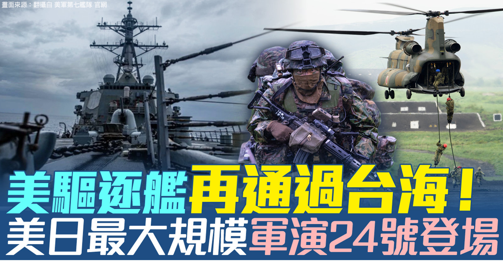 美驅逐艦再通過台海!美日最大規模軍演24號登場