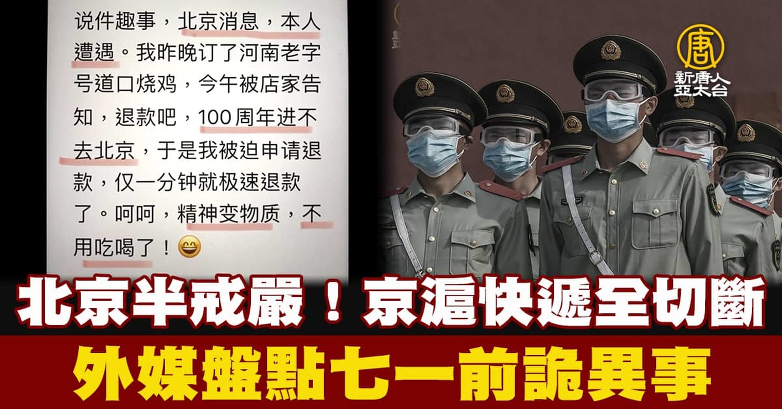 北京半戒嚴!京滬快遞全切斷 外媒盤點七一前詭異事