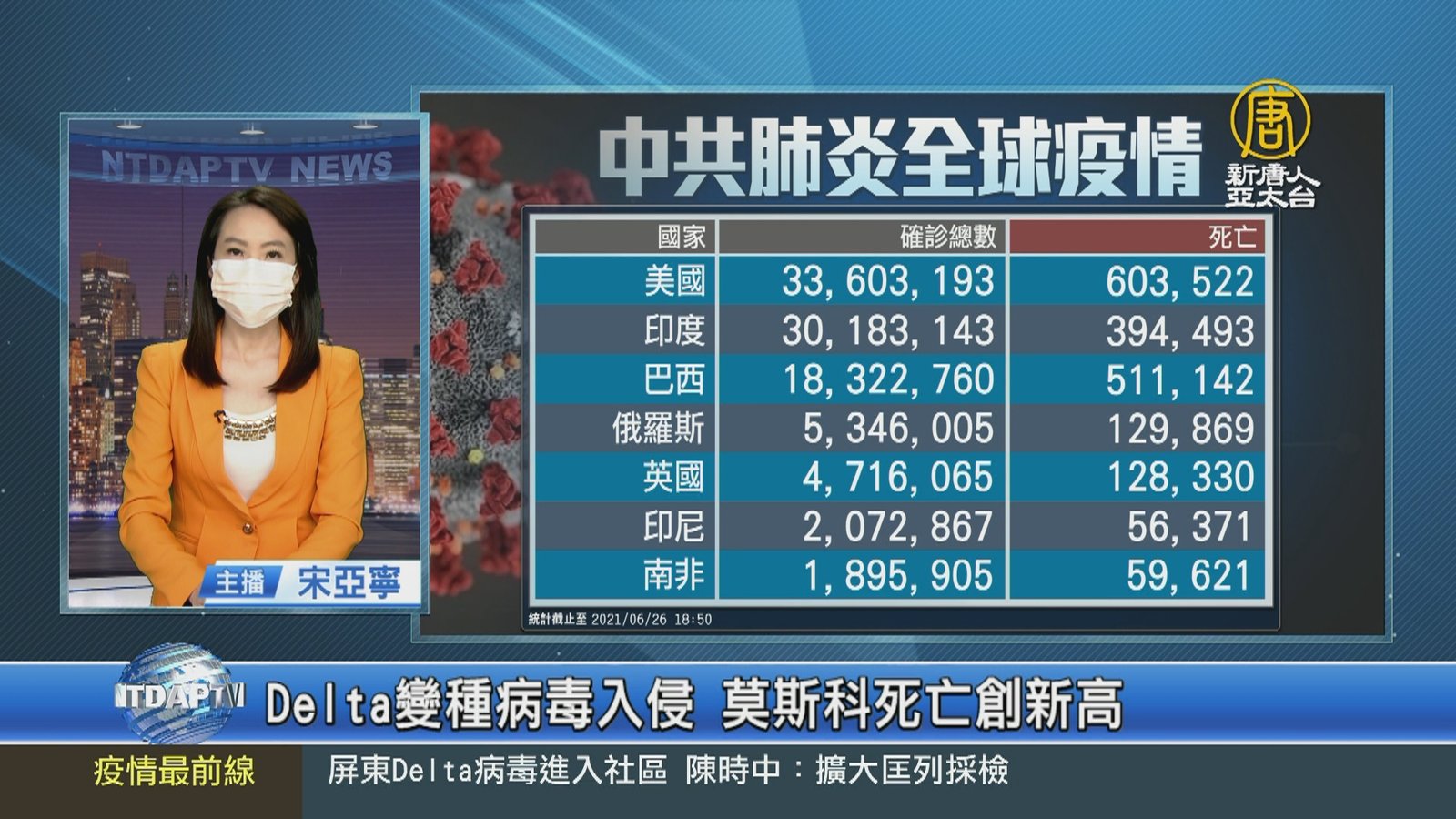 來關心中共肺炎疫情最新情況,全球確診超過1億8千041萬人,死亡3百90萬9千多人。但中共、伊朗等國家,被認為嚴重低報數據。亞洲方面,俄羅斯25日新增2萬多例確診,其中7千9百多例出現在首都莫斯科,是今年1月24日以來的單日最高確診紀錄,莫斯科死亡增加98人也創單日新高,當局說是因為Delta變種病毒入侵,以及疫苗接種進展遲緩所導致。印尼新增確診2萬1千多例,創疫情爆發以來單日最高紀錄。歐洲方面,英國也受到Delta變種病毒衝擊,過去7天共有9萬多人確診,比前一週增加了47.9%;死亡也比前一週多52%。 //asset1.ntdtv.com.tw/public/uploads/assets/2021/06/26/2021-06-26-60d71d918c172.mp4 俄羅斯|莫斯科|確診|死亡|Delta變種病毒|斐濟|英國|南非|突尼西亞總理|中共肺炎|武漢肺炎|疫情|防疫|中共病毒|新型冠狀病毒2021-06-26 20:26:04