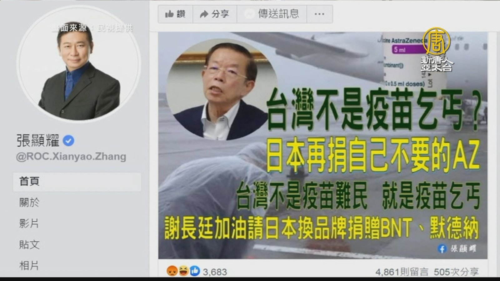 前國民黨立委張顯耀25日在臉書稱日本捐的疫苗是自己不要的AZ,不過隨後張顯耀被踢爆,早在5月底就已經在高雄義大醫院接種AZ疫苗。高市衛生局調查後,認為義大醫院、張顯耀有違反《傳染病防治法》事實,分別處新台幣30萬、1.5萬罰款。高雄市長陳其邁再度重申,違反規定就是開罰沒有例外,不要一再挑釁。 //asset1.ntdtv.com.tw/public/uploads/assets/2021/06/26/2021-06-26-60d725dccf293.mp4 張顯耀|AZ疫苗|乞丐疫苗|特權疫苗|國民黨|中共肺炎|武漢肺炎|疫情|防疫|中共病毒|新型冠狀病毒2021-06-26 21:02:25