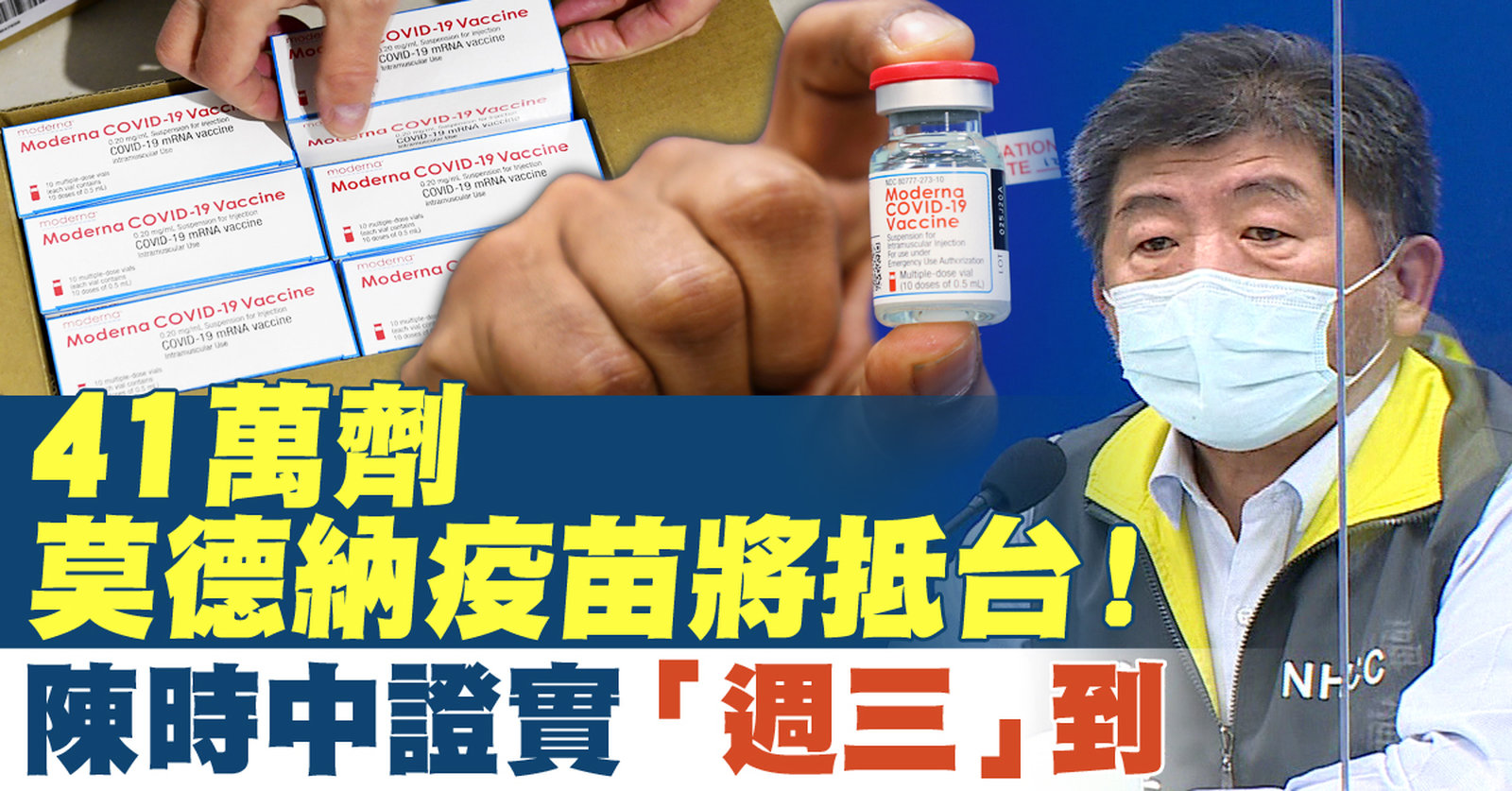 41萬劑莫德納疫苗將抵台!陳時中證實「週三」到