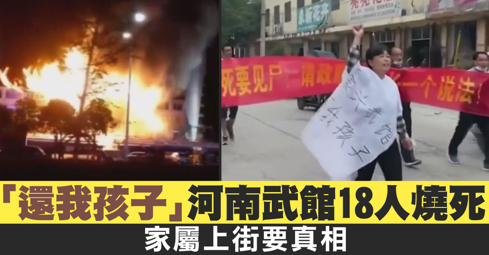 「還我孩子」河南武館18人燒死 家屬上街要真相