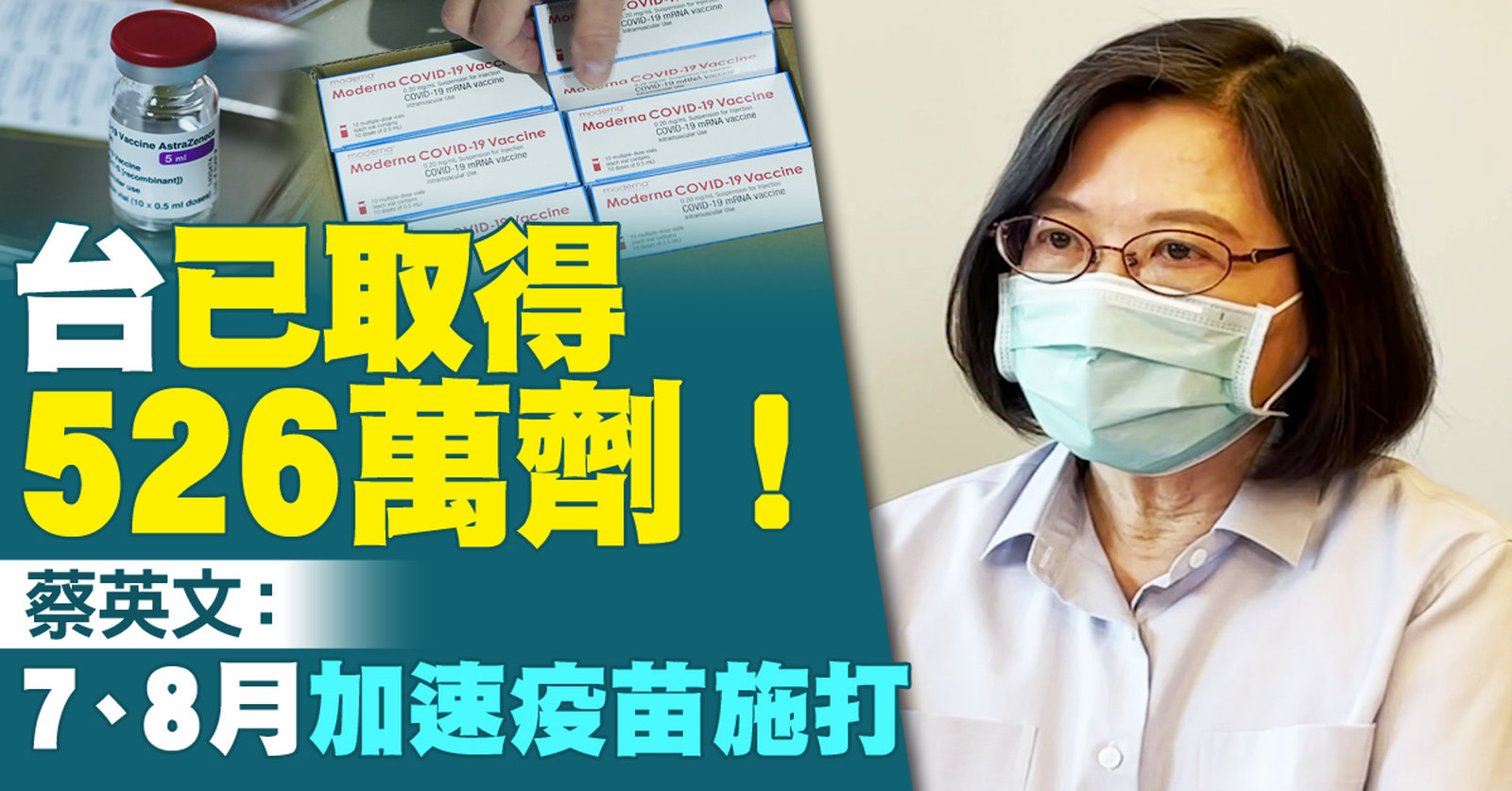 台已取得526萬劑!蔡英文:7、8月加速疫苗施打