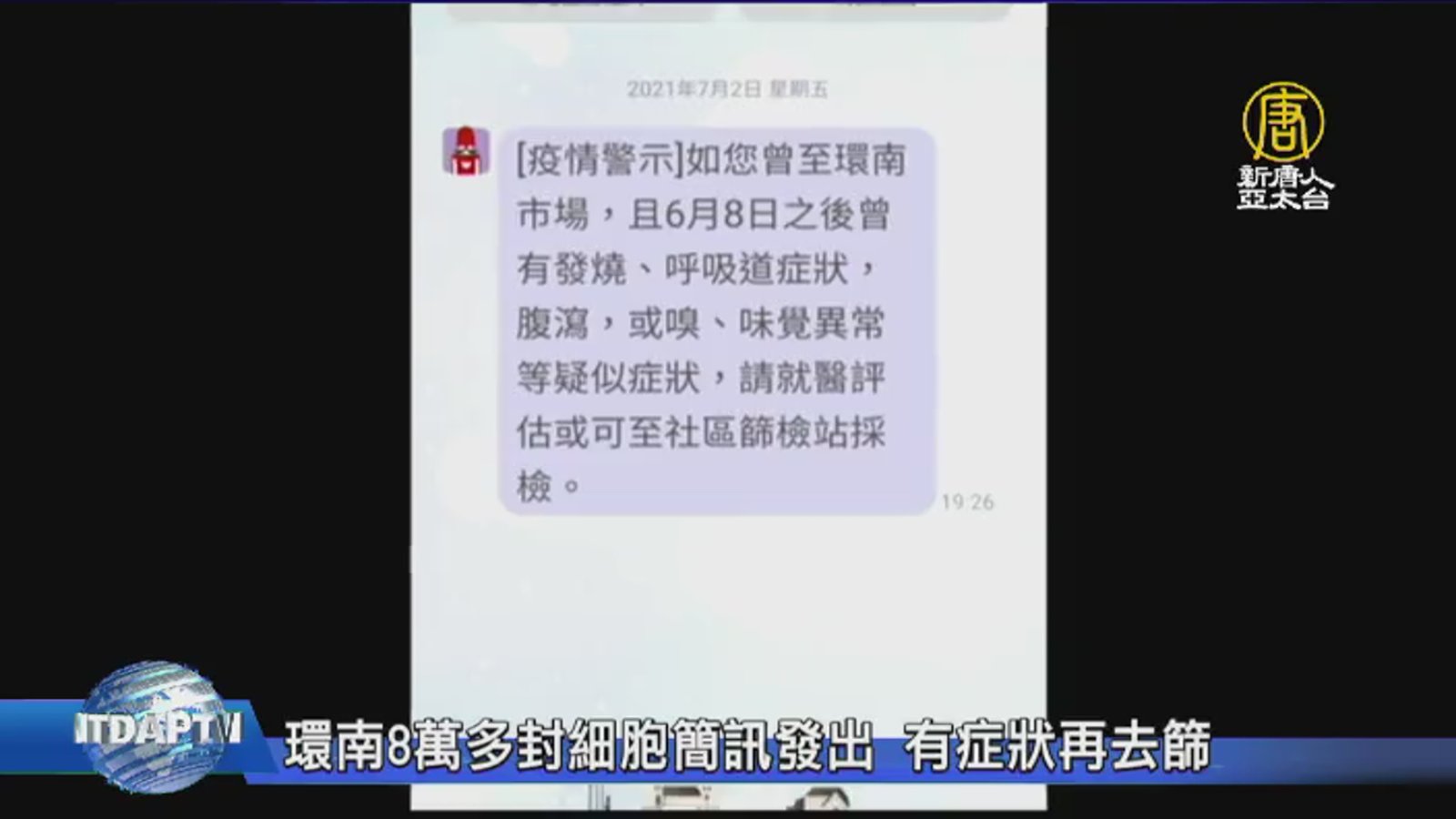 防堵環南市場染疫擴大,指揮中心針對周遭鄰近4個路段,發出8萬多封的細胞簡訊,不少民眾收到簡訊擔心是否曾與確診者有接觸。根據了解,細胞發送的方式,主要是依據當地手機基地台,去做發送,6月8日至7月1日,行動電話經過匡列範圍,都會收到簡訊,請民眾不要過度擔心。 //asset1.ntdtv.com.tw/public/uploads/assets/2021/07/03/2021-07-03-60e055be0cc13.mp4 環南市場|確診|細胞簡訊|黑數|中共肺炎|武漢肺炎|疫情|防疫|中共病毒|新型冠狀病毒2021-07-03 20:15:40