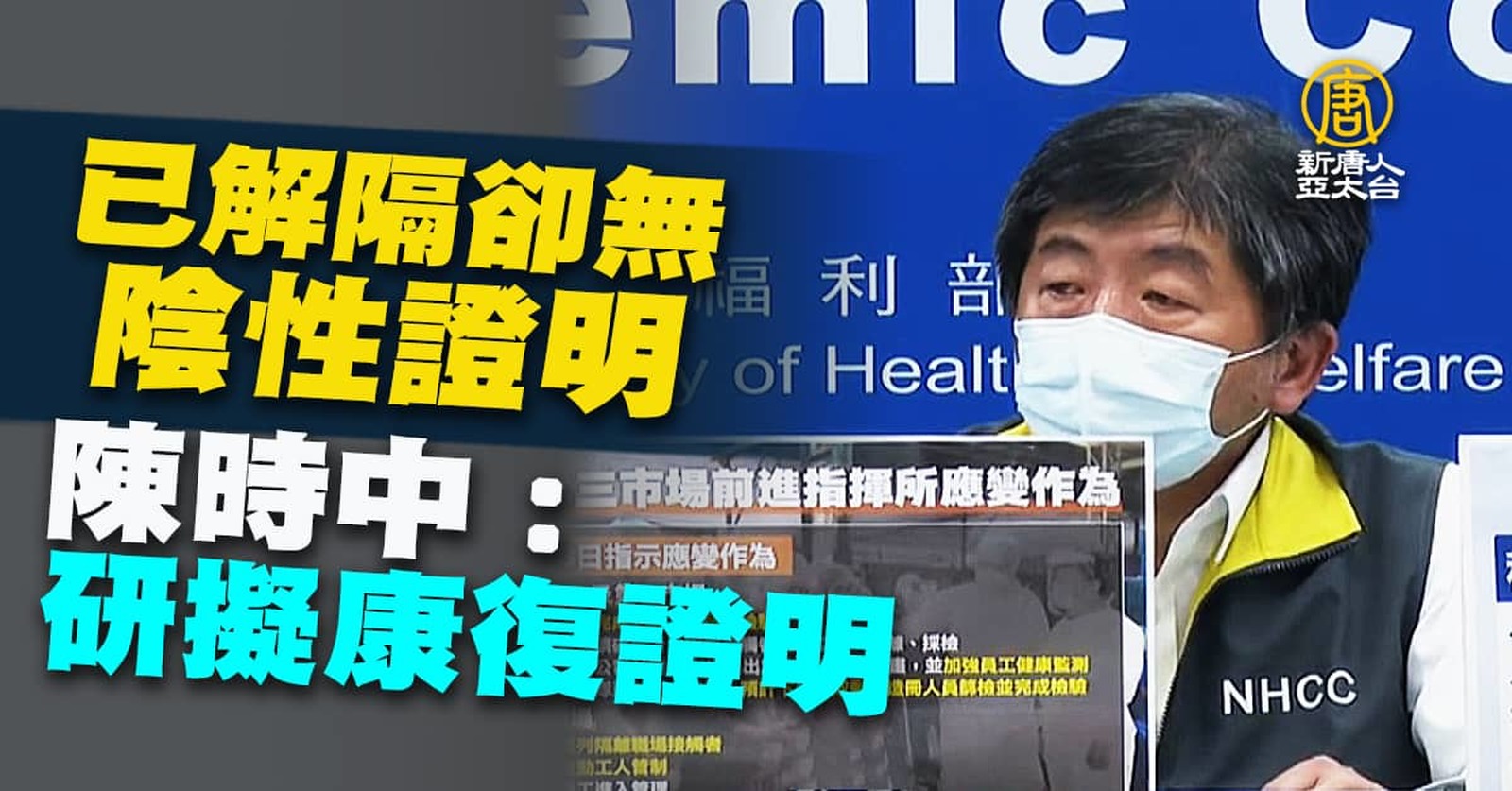 已解隔卻無陰性證明 陳時中:研擬康復證明