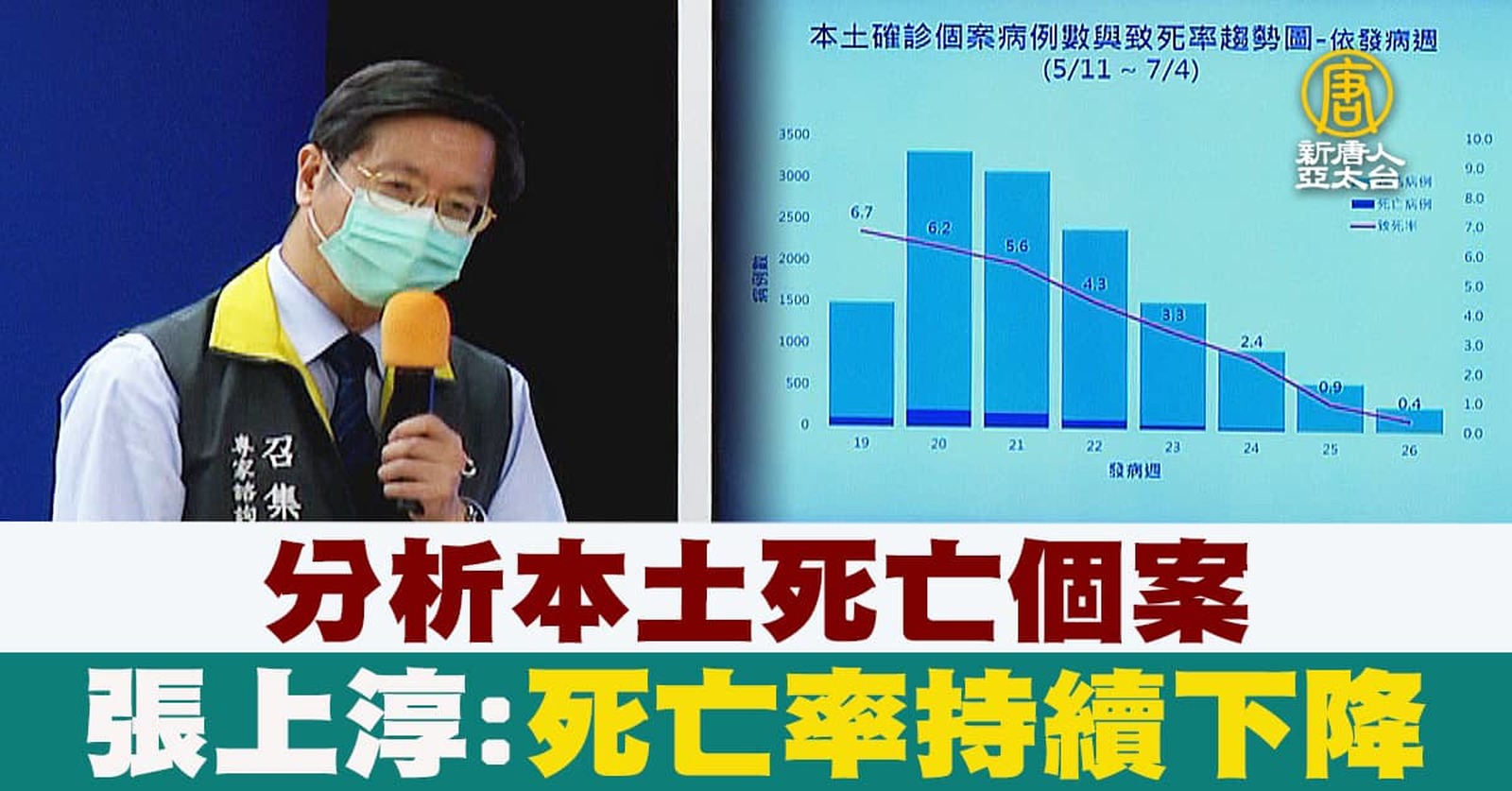 來看到,台灣這波本土疫情,已經爆發一個多月。今天(5日)中央防疫專家小組召集人,張上淳醫師,分析說明本土死亡個案情況,指出有9成死亡個案是60歲以上,目前這波疫情,造成675人死亡。 //asset2.ntdtv.com.tw/public/uploads/assets/2021/07/05/2021-07-05-60e309960fdcb.mp4 中共肺炎|防疫|疫情|死亡個案|單株抗體藥物2021-07-05 21:28:37