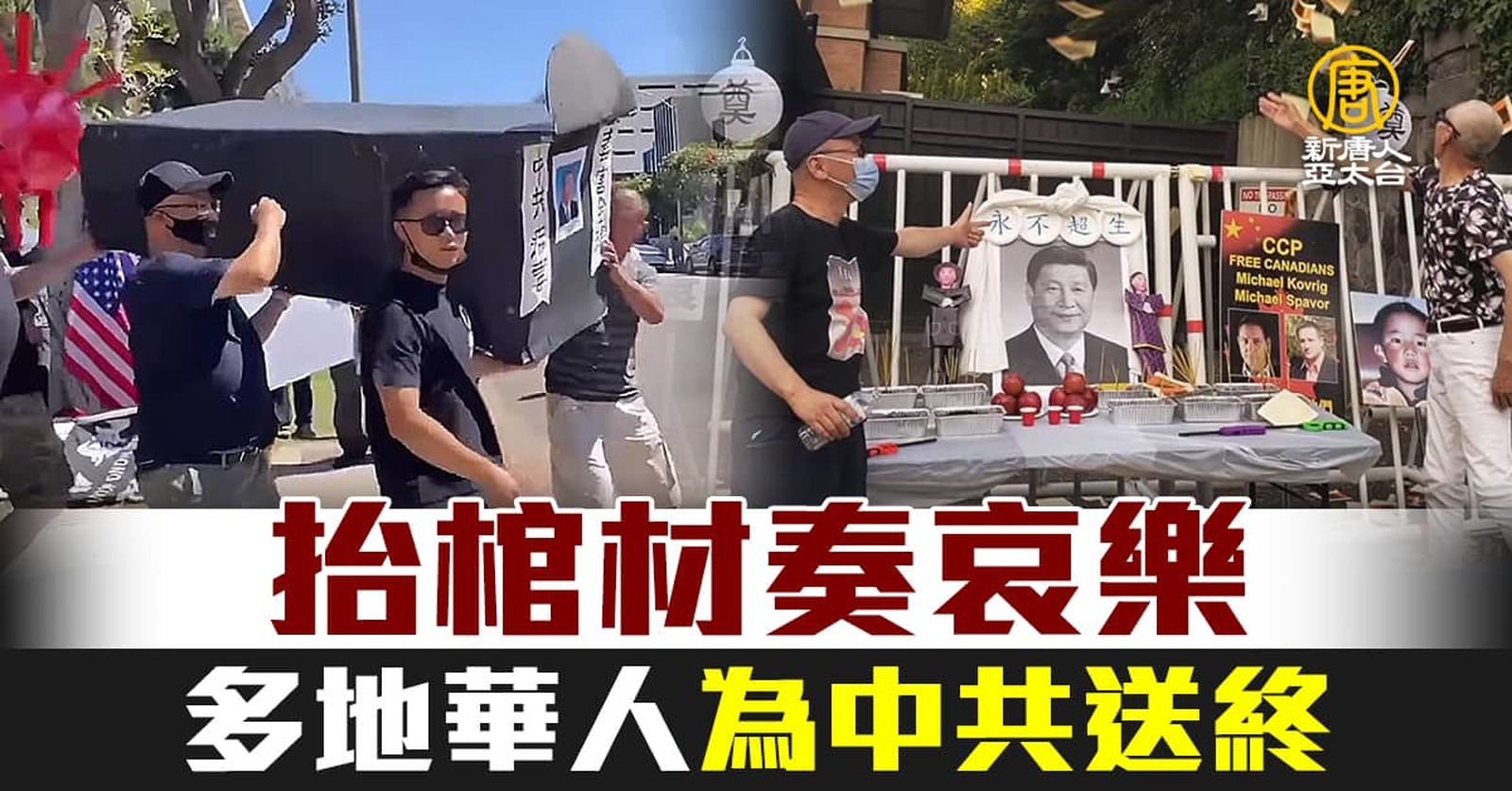 中共「百年黨慶」當天,世界多地華人、不同族裔團體紛紛前往中共使領館集會抗議,控訴:中共為害中國,為害世界一百年,已經太久。民眾抬棺材、奏哀樂、撒冥幣,為中共暴政送終。 //asset1.ntdtv.com.tw/public/uploads/assets/2021/07/05/2021-07-05-60e30f254b308.mp4 中共百年黨慶|華人抗議|迫害法輪功|抬棺材|中共暴政|送終2021-07-05 21:12:48