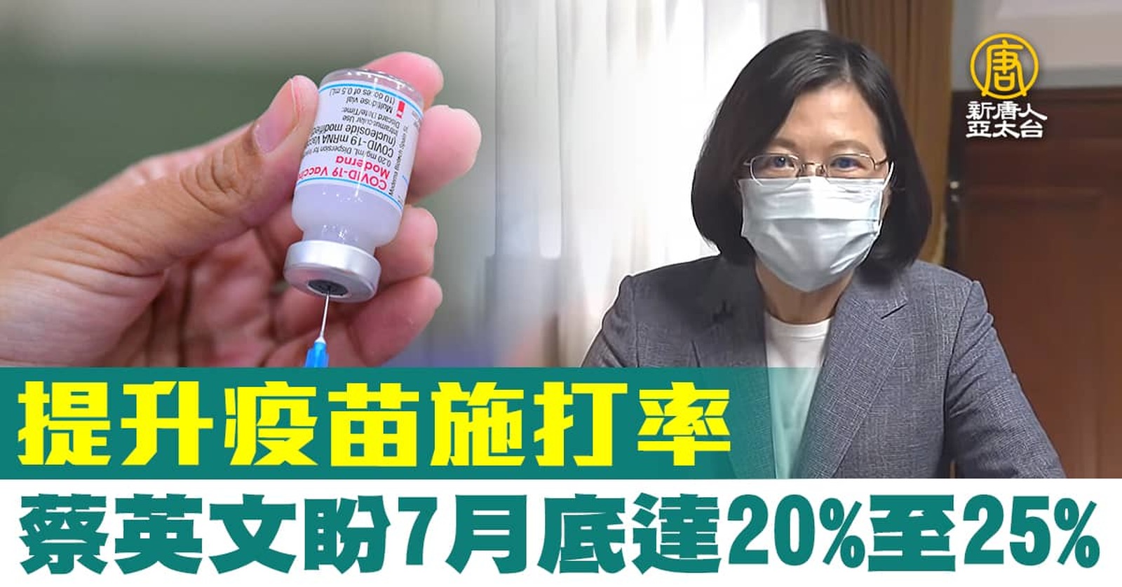 提升疫苗施打率 蔡英文盼7月底達20%至25%