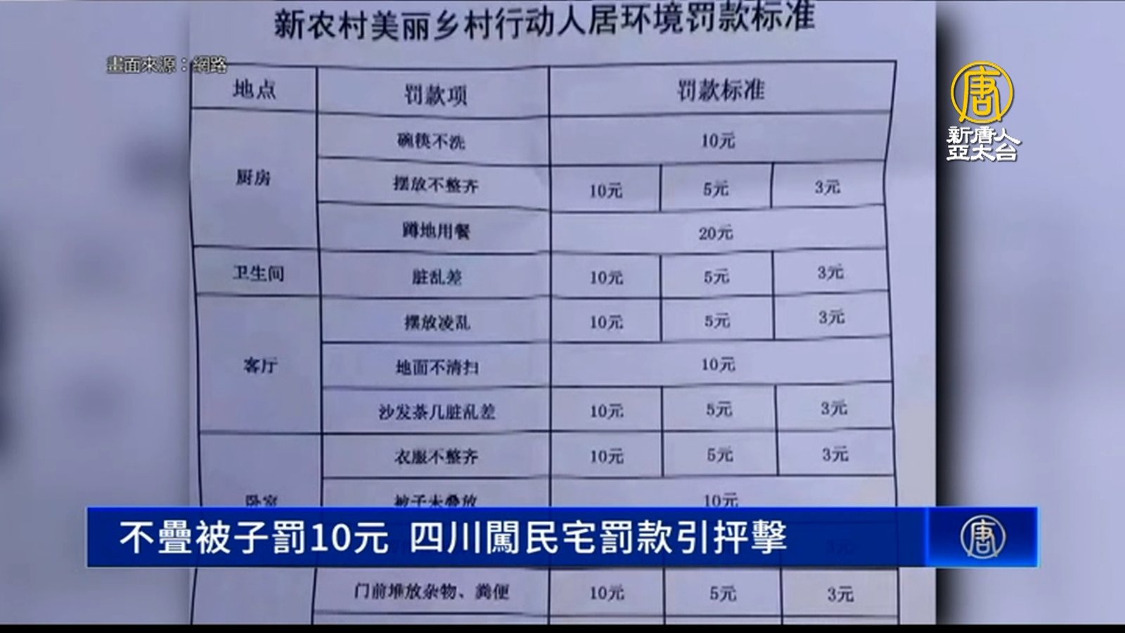 到家搶錢!四川窮縣不洗碗不折被子要罰款挨轟