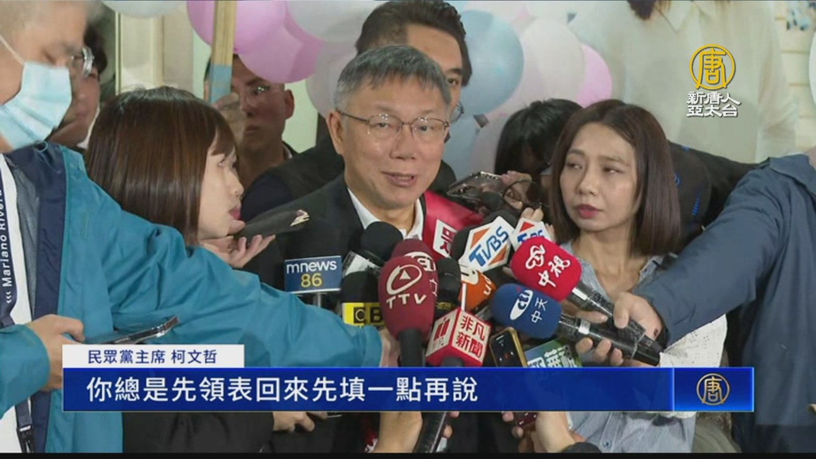 台灣總統大選,參選登記,最後期限在24日下午。在郭台銘辦公室(22日)領表2個小時後,柯文哲競選總幹事黃珊珊也出現在中選會代為領表。對於媒體詢問,時代力量質疑民眾黨不分區立委名單是酬庸,也有問柯文哲與郭台銘會否搭配參選等問題,黃珊珊只微笑、沒有回應。 //asset1.ntdtv.com.tw/public/uploads/assets/2023/11/22/2023-11-22-655deded754af.mp4 2024總統大選|柯文哲|領表|黃珊珊2023-11-22 20:48:32
