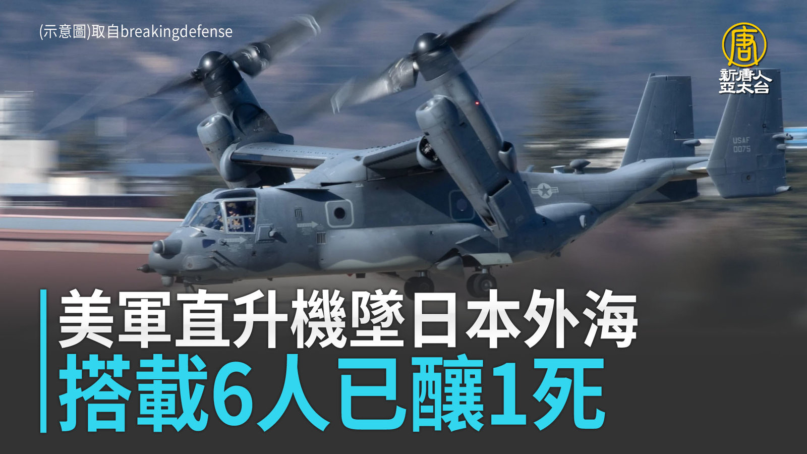 美軍一架V-22魚鷹式直升機,在日本時間今天下午2點47分左右墜海,機上有6名人員,美軍正在調查事故。日本海上保安廳稍早證實,目前已從失事海域上空,發現墜機殘骸。日媒NHK報導,已尋獲3人,其中1人送醫後不治身亡。 //asset2.ntdtv.com.tw/public/uploads/assets/2023/11/29/2023-11-29-65671f3f316b3.mp4 V-22魚鷹式直升機|墜海|美軍2023-11-29 19:20:40