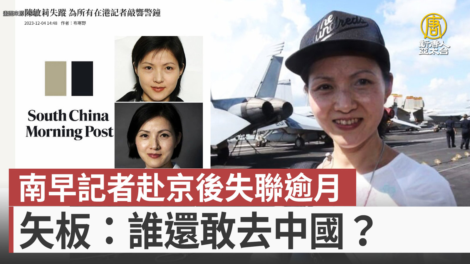 再來看到,近日,香港英文報紙《南華早報》資深記者陳敏莉,到北京採訪、失聯一個月的消息,引發外界關注,陳敏莉最後的公開行蹤是落在10月底到11月初,正是在北京採訪停辦四年,今年復辦的「北京香山論壇」。日本《產經新聞》台北支局長、中國問題專家矢板明夫透露,陳敏莉可能因為採訪前中共防長李尚福被免職的新聞,而失去自由。並質問,誰還敢去中國?雖然《南華早報》後來稱陳家人回應,「陳敏莉正在北京處理私人事務」。但陳敏莉的朋友和其他媒體記者仍未與她取得聯絡,消息引發國際關注,香港記協發聲明關注她的安危,另外半島電視台報導 //asset2.ntdtv.com.tw/public/uploads/assets/2023/12/05/2023-12-05-656f08e73dc67.mp4 香港|南華早報記者|陳敏莉|失聯|北京香山論壇|李尚福2023-12-05 19:25:47