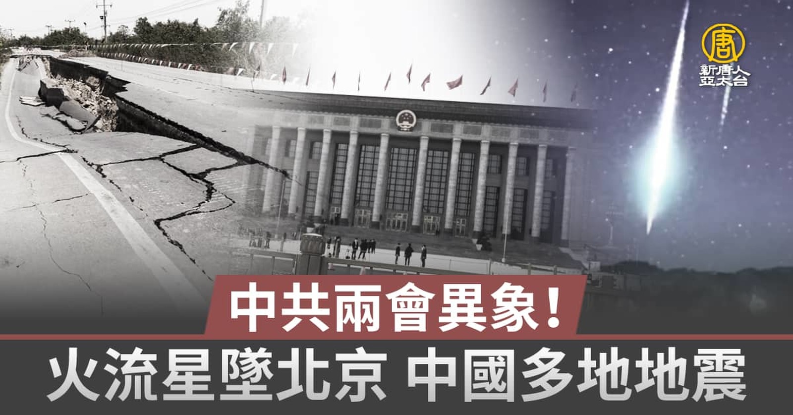再來關心,中共兩會期間,中國大陸連續三天發生地震,而且還出現巨大的火流星。在兩會首日的凌晨,中國北京市接連出現兩顆巨大的火流星從空中墜落,在下墜過程中爆炸,發出耀眼的綠色光芒,影片在網路上熱傳,但中共官媒幾乎沒有對此進行報導。民間認為,火流星是社會動盪先兆,往往與政權倒台相關聯,被認為是不祥之兆。 //asset1.ntdtv.com.tw/public/uploads/assets/2024/03/06/2024-03-06-65e854e1c1162.mp4 中共兩會|異象2024-03-06 20:09:43