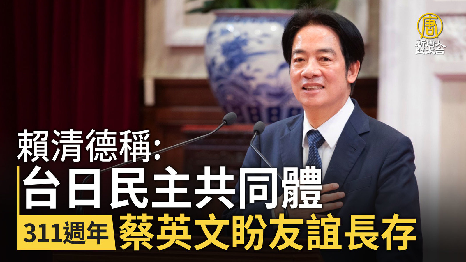 賴清德稱台日民主共同體 311週年蔡英文盼友誼長存