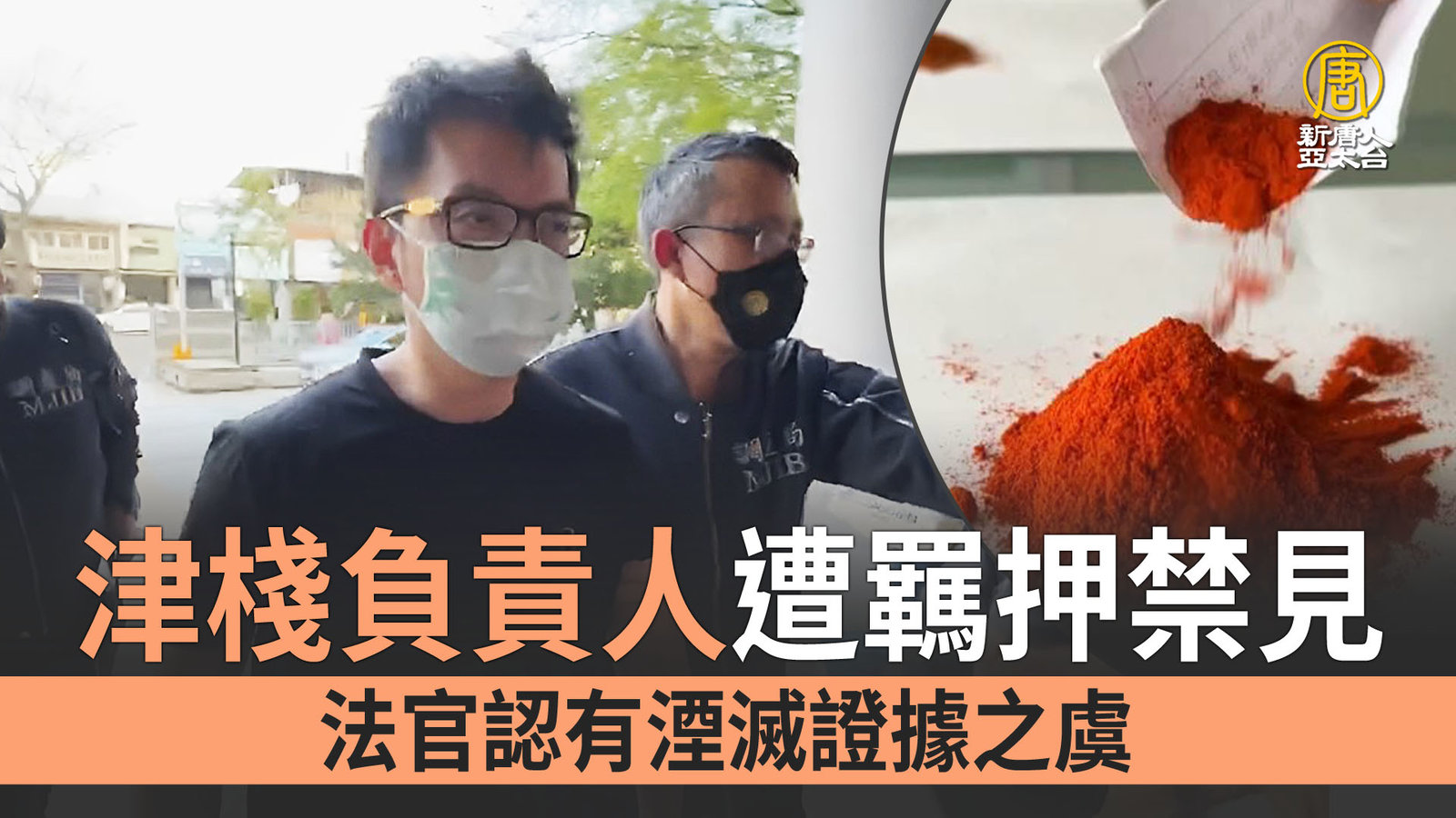 輸入蘇丹紅成分辣椒粉的津棧公司,高雄地院今天(13日)裁定,對負責人李彥廷羈押禁見。法院認定,犯罪嫌疑重大、有逃亡之虞,且尚有其他人員及證據待查,被告有勾串、湮滅證據的可能性。 //asset3.ntdtv.com.tw/public/uploads/assets/2024/03/13/2024-03-13-65f1893e121c6.mp4 食安|辣椒粉|蘇丹紅|津棧|佳廣|高雄地院|檢調2024-03-13 21:19:10