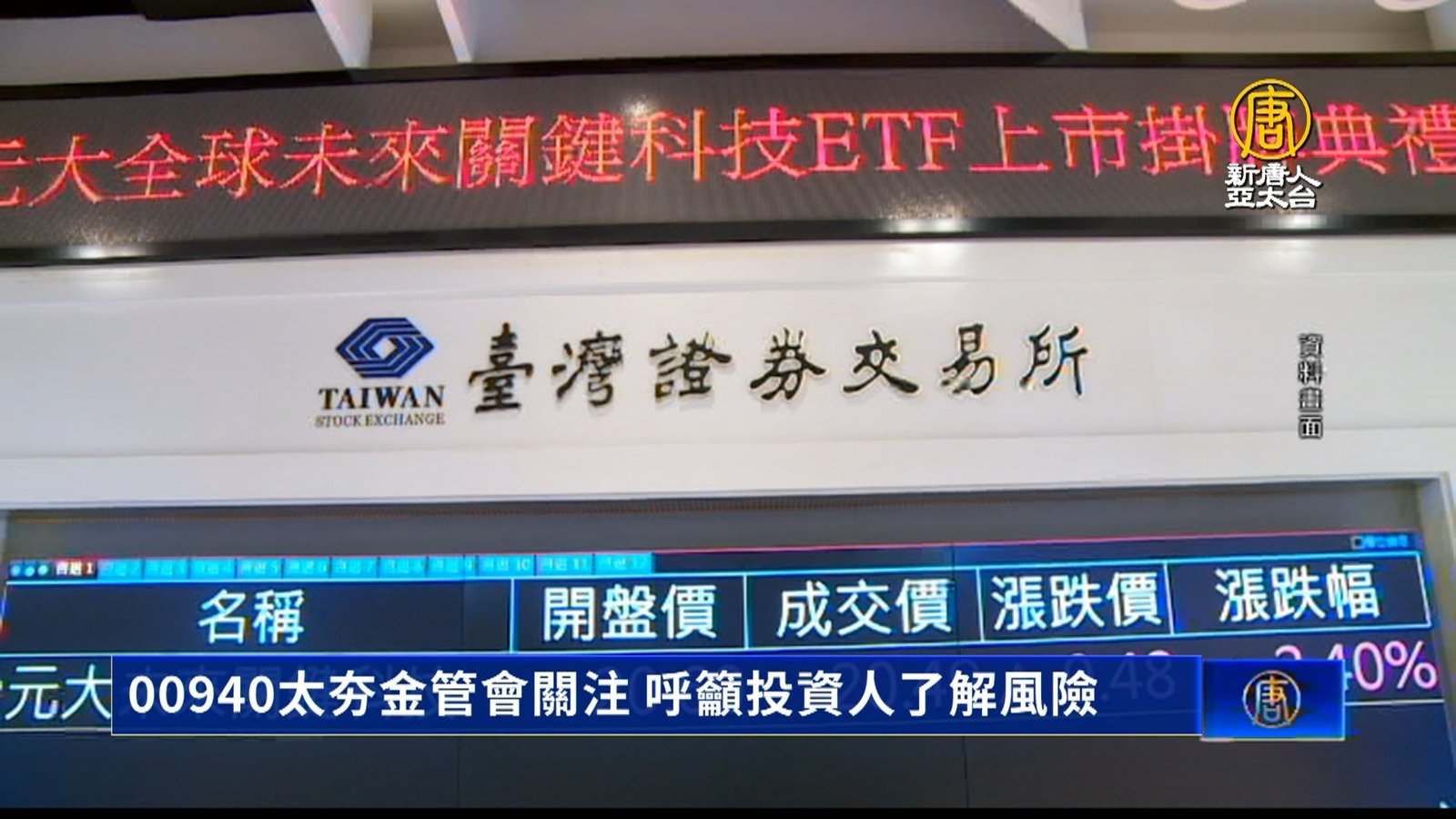 元大台灣價值高息ETF,00940,掀起搶購熱潮,傳出有投資人解除定期存款、抵押房子找現金搶搭車。對此,台灣主管機關金管會聲明,已經提醒元大投信,留意行銷文宣,金管會呼籲投資人注意2件事,基金投資有賺有賠,任何投資都有風險;也喊話在投資前,應該先了解ETF背後組成,多方考量再決定是否進場。 //asset1.ntdtv.com.tw/public/uploads/assets/2024/03/13/2024-03-13-65f18db10216d.mp4 ETF|元大|00940|金管會|投資|股票|股市|台股2024-03-13 21:22:27