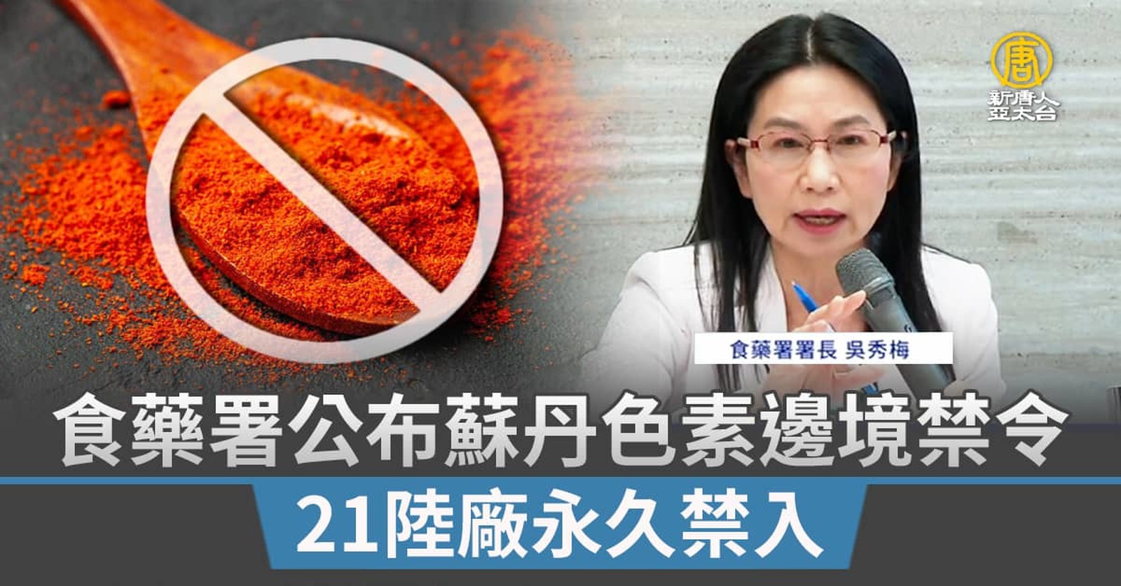 從中國進口的辣椒粉含有害的蘇丹紅成分,影響民生餐飲。台灣食藥署宣布最新邊境管制措施, 對這些不合格的境外出口商及製造廠,無限期禁止輸入台灣,包括先前已檢出的21家中國業者。相關涉案業者被指控,把被台灣海關退運的不合格商品,重新包裝闖關。 //asset3.ntdtv.com.tw/public/uploads/assets/2024/03/13/2024-03-13-65f1890569b2e.mp4 蘇丹紅|辣椒粉|食藥署|吳秀梅|食安法2024-03-13 19:03:31
