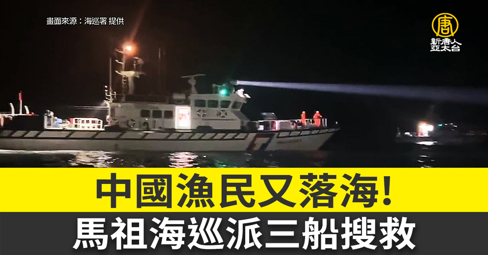 繼前一天金門海域發生中國漁船沉沒導致兩死兩失蹤,今天(15日)又有中國漁船的船員在馬祖海域落海。海巡署艦隊分署表示,收到陸方協尋通報,先後出動三艘巡防艇前往搜救。 //asset2.ntdtv.com.tw/public/uploads/assets/2024/03/15/2024-03-15-65f42c07829c3.mp4 中國漁民|中國漁船|落海|海巡|人道救援2024-03-15 20:12:09