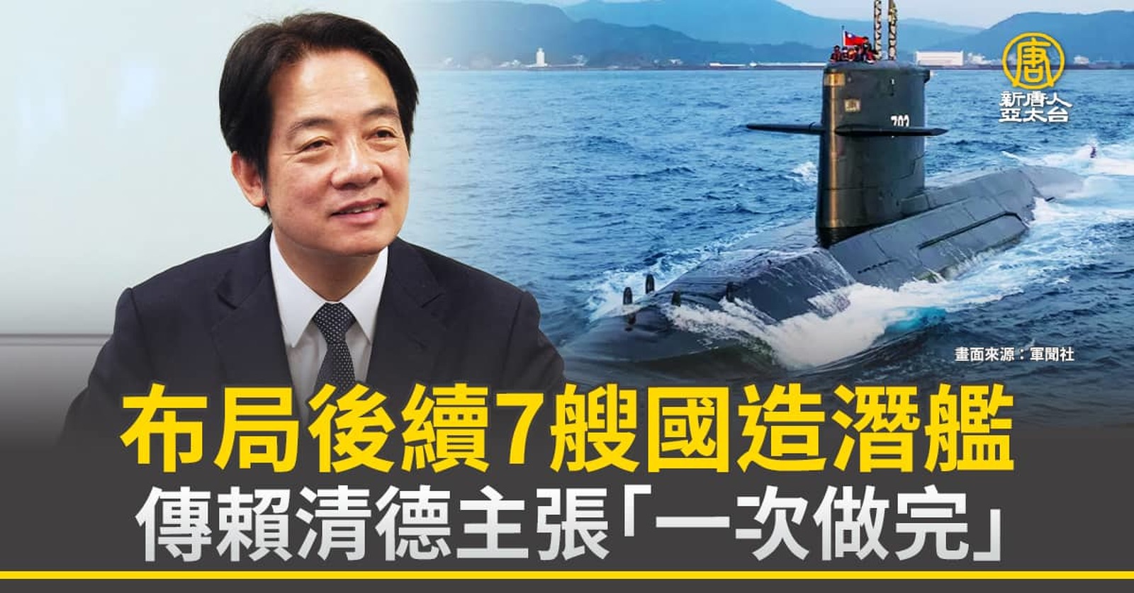 布局後續7艘國造潛艦 傳賴清德主張「一次做完」