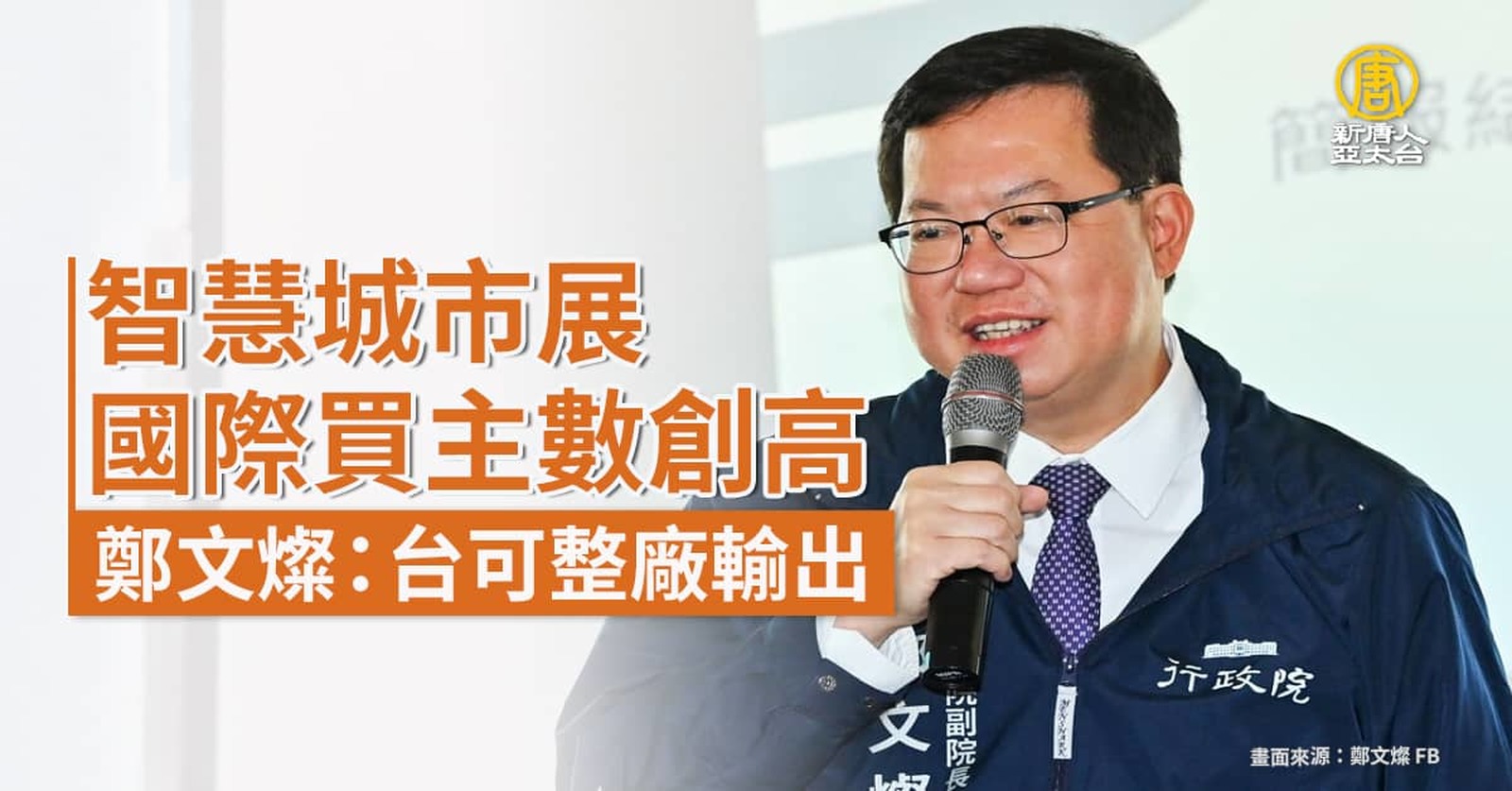 來看到,國內智慧城市展暨淨零城市展今天開幕,行政院副院長鄭文燦表示,數位轉型和綠色轉型是當前政府最重要的政策,台灣企業不只未來可協助台灣「雙軸轉型」,還可以產業輸出。 //asset1.ntdtv.com.tw/public/uploads/assets/2024/03/19/2024-03-19-65f97ad6392e6.mp4 智慧城市展2024-03-19 19:42:39