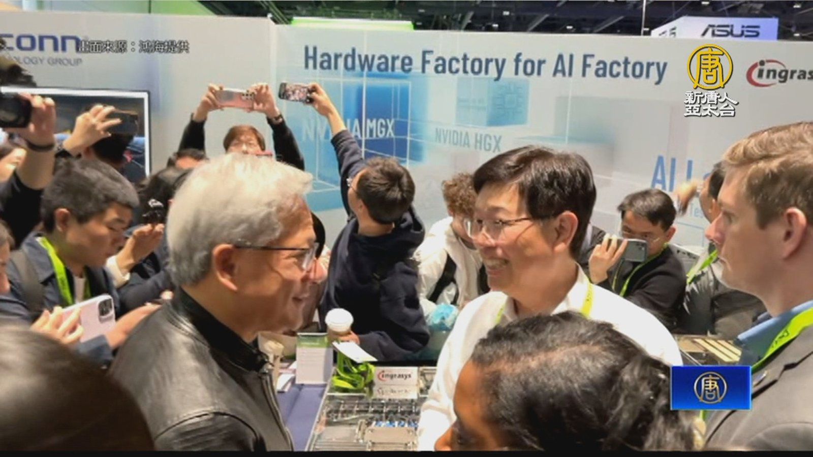 輝達(NVIDIA)GTC大會第3天,執行長黃仁勳前往鴻海展位參觀,鴻海劉揚偉接受媒體訪問透露,6月台北國際電腦展,黃仁勳將再度來台,公布輝達與鴻海最新合作內容。 //asset2.ntdtv.com.tw/public/uploads/assets/2024/03/21/2024-03-21-65fc18b90bc06.mp4 GTC|鴻海|劉揚偉|COMPUTEX2024-03-21 19:20:36
