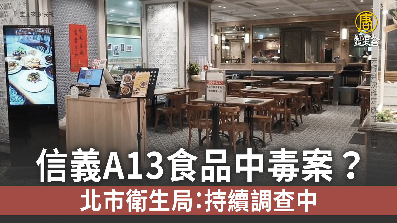 台北市衛生局接獲通報,22日中午有民眾到信義A13的一家素食餐廳用餐後,2名民眾分別於當天晚上8點及10點,開始有疑似食物中毒症狀。其中一名在三重醫院就醫轉院馬偕後死亡。24日下午台北市衛生局立即到素食餐廳稽查,詳細情況目前仍在調查中。 //asset2.ntdtv.com.tw/public/uploads/assets/2024/03/26/2024-03-26-6602ae43c1671.mp4 信義A13|食品中毒|素食餐廳|台北市衛生局2024-03-26 19:07:43
