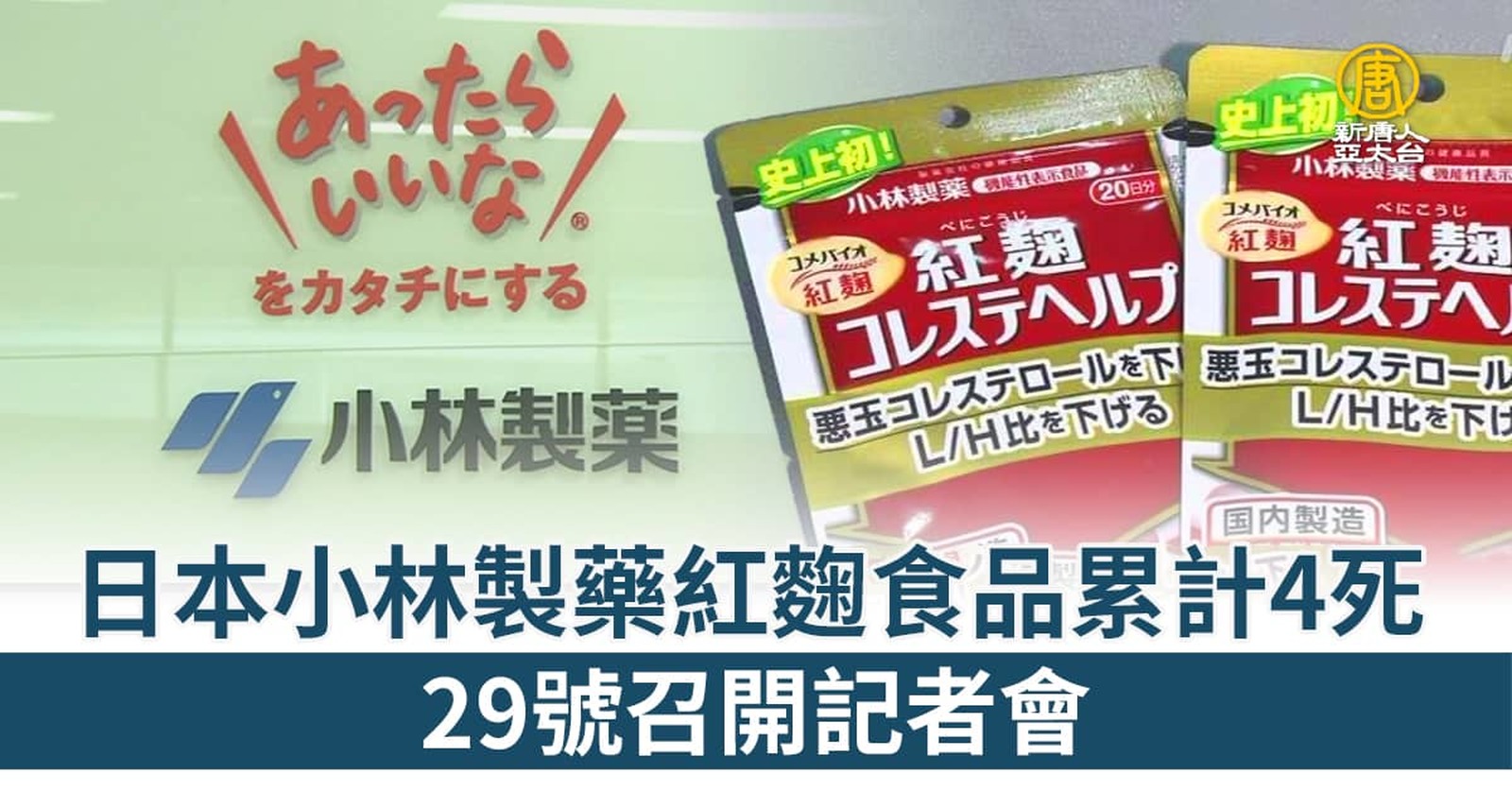 日本小林製藥紅麴食品累計4死 29號召開記者會