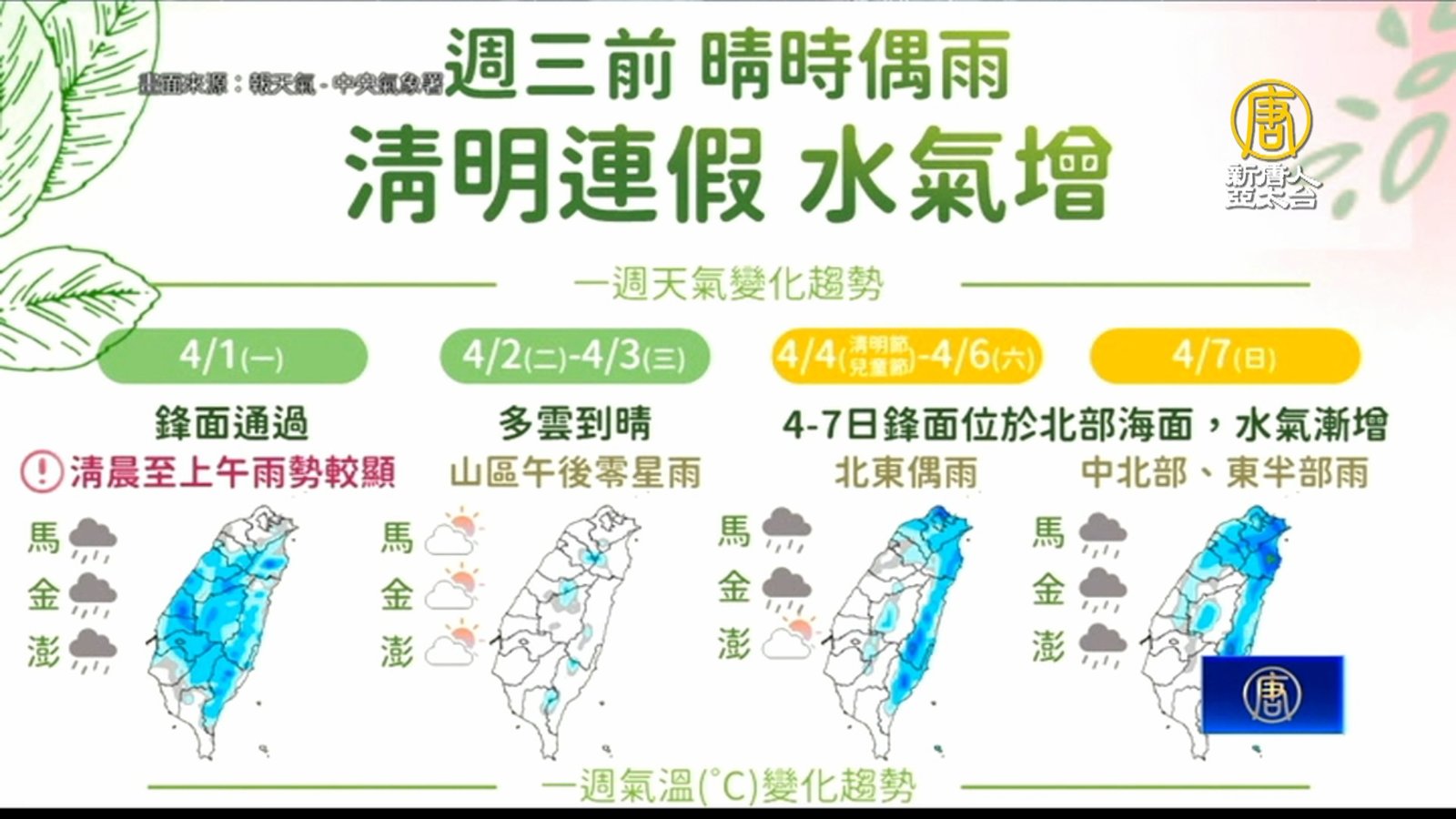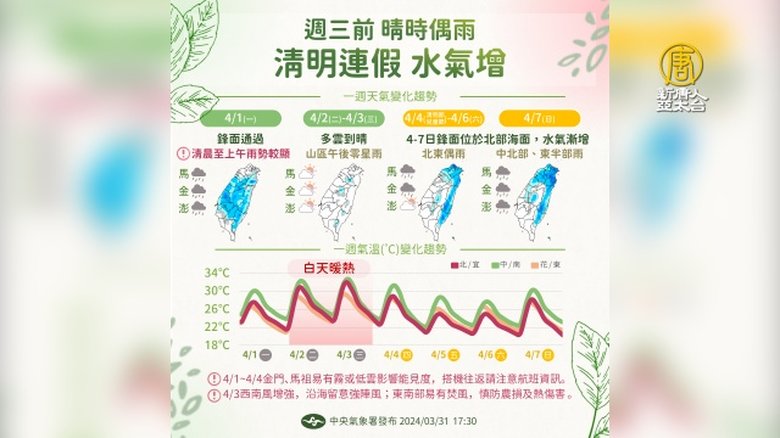 清明連假2鋒面影響台灣 週六雨勢增強、擴大