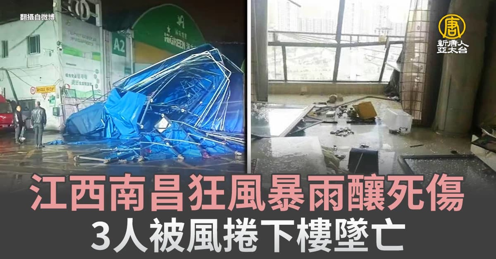江西南昌狂風暴雨釀死傷 3人被風捲下樓墜亡
