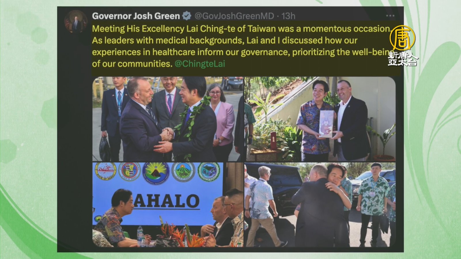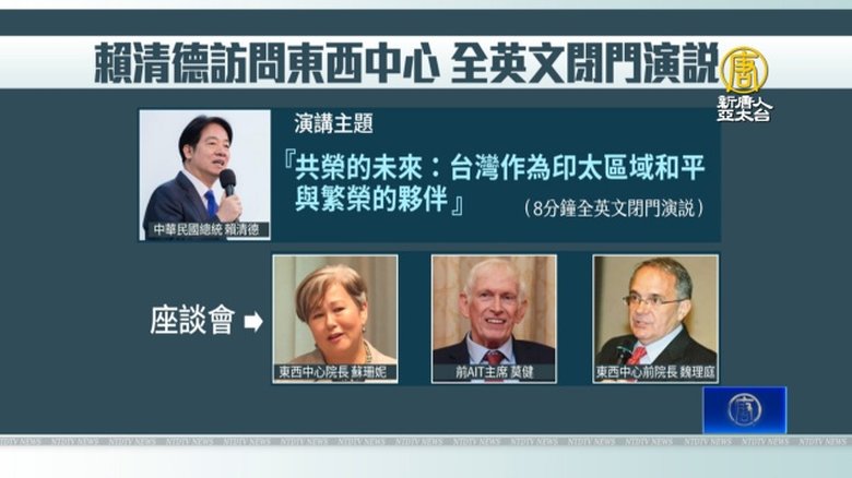 新聞首先關心,中華民國總統賴清德出訪南太平洋三友邦,高規格過境美國夏威夷州,週日(1日)到美國國務院資助的智庫「東西文化中心」發表演說;被問到未來4年或8年的願景時說,台灣目前最大的挑戰是中共威脅,重申對國家整體發展規劃的3大使命。 //www.ntdtv.com.tw/public/uploads/assets/2024/12/02/2024-12-02-674dafc997946-220x123-169.jpg 賴清德|夏威夷|過境2024-12-02 21:06:04