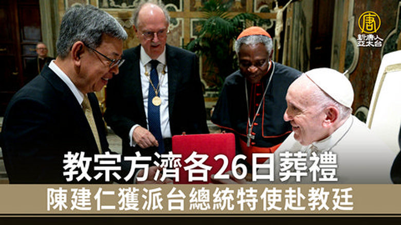 再來看到,羅馬天主教教宗方濟各(Pope Francis)葬禮26日舉行,美國、英國、法國、德國、歐盟、烏克蘭等多位領袖都宣布將前往羅馬,梵蒂岡教廷,是中華民國在歐洲的唯一邦交國,總統賴清德今天(23日)指派,前副總統陳建仁擔任總統特使出席。中華民國外交部表示,陳建仁曾六度晉見教宗方濟各,並獲教宗親自頒授宗座科學院院士證章,與教宗關係深厚,因此決定由陳建仁代表出席教宗喪禮。未來將持續深化台梵關係,加強宗教交流,推動普世宗教自由價值。 //www.ntdtv.com.tw/public/uploads/assets/2025/04/23/2025-04-23-6808dc7c24682-220x123-169.jpg 陳建仁|方濟各喪禮|教宗|梵蒂岡2025-04-23 20:47:44