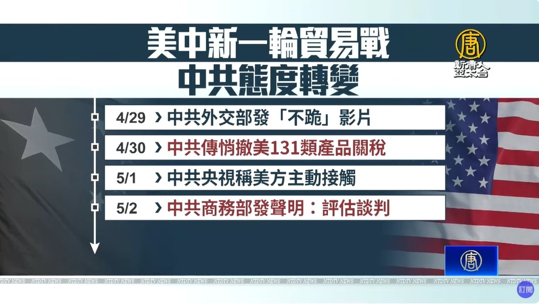 新聞首先來看到,美中關稅戰進展,美國國務卿盧比歐透露,近日中方主動要求會談,雙方將很快展開關稅談判。盧比歐立場強硬反共,在華府角色越來吃重,暫代白宮國安顧問,身兼四項要職。 //www.ntdtv.com.tw/public/uploads/assets/2025/05/02/2025-05-02-6814bde18b993-220x123-169.jpg 盧比歐|白宮|國安顧問|關稅談判|瓦爾茲2025-05-02 20:45:11