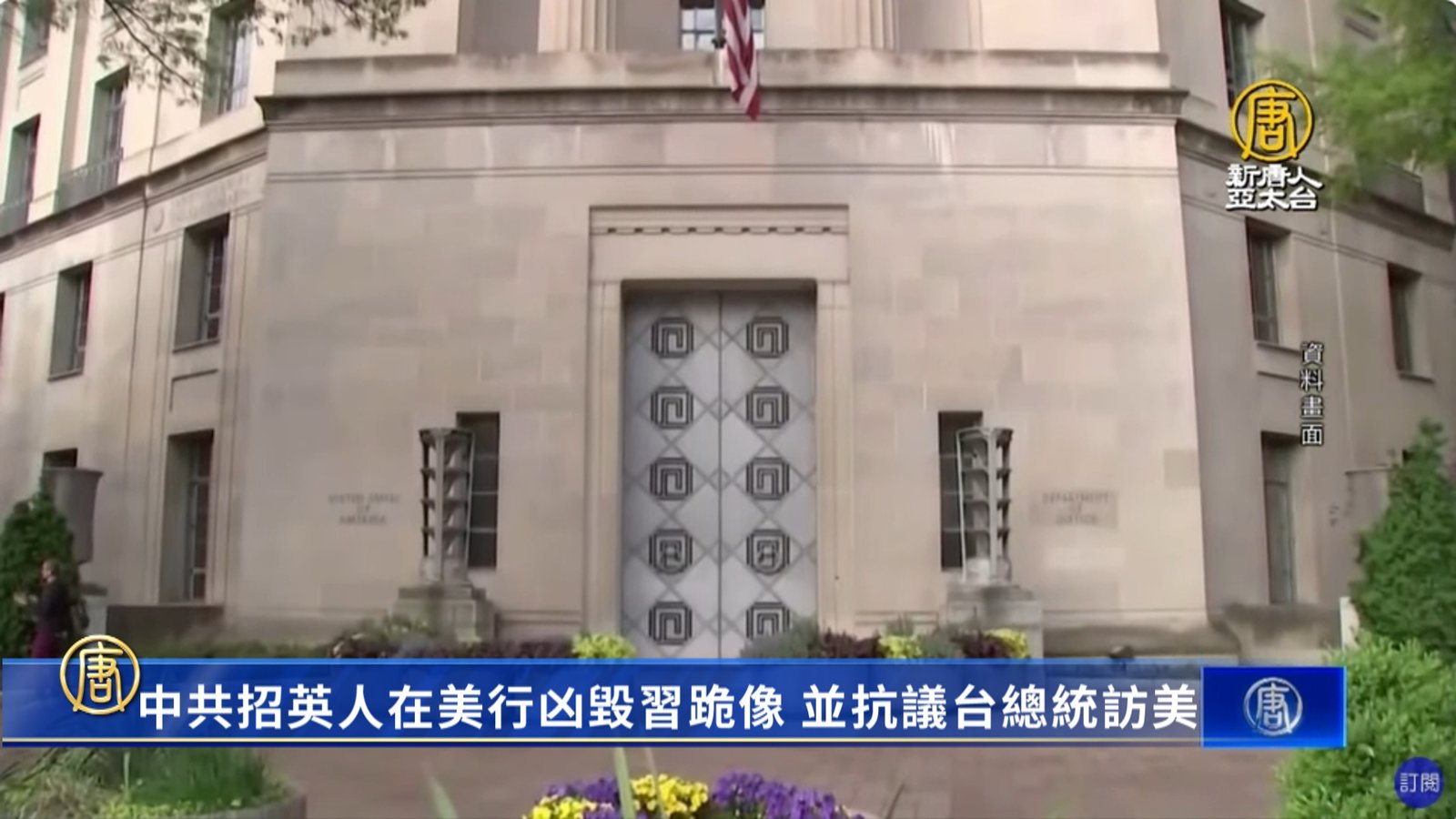 中共招英人在美行凶毀習跪像 並抗議台總統訪美