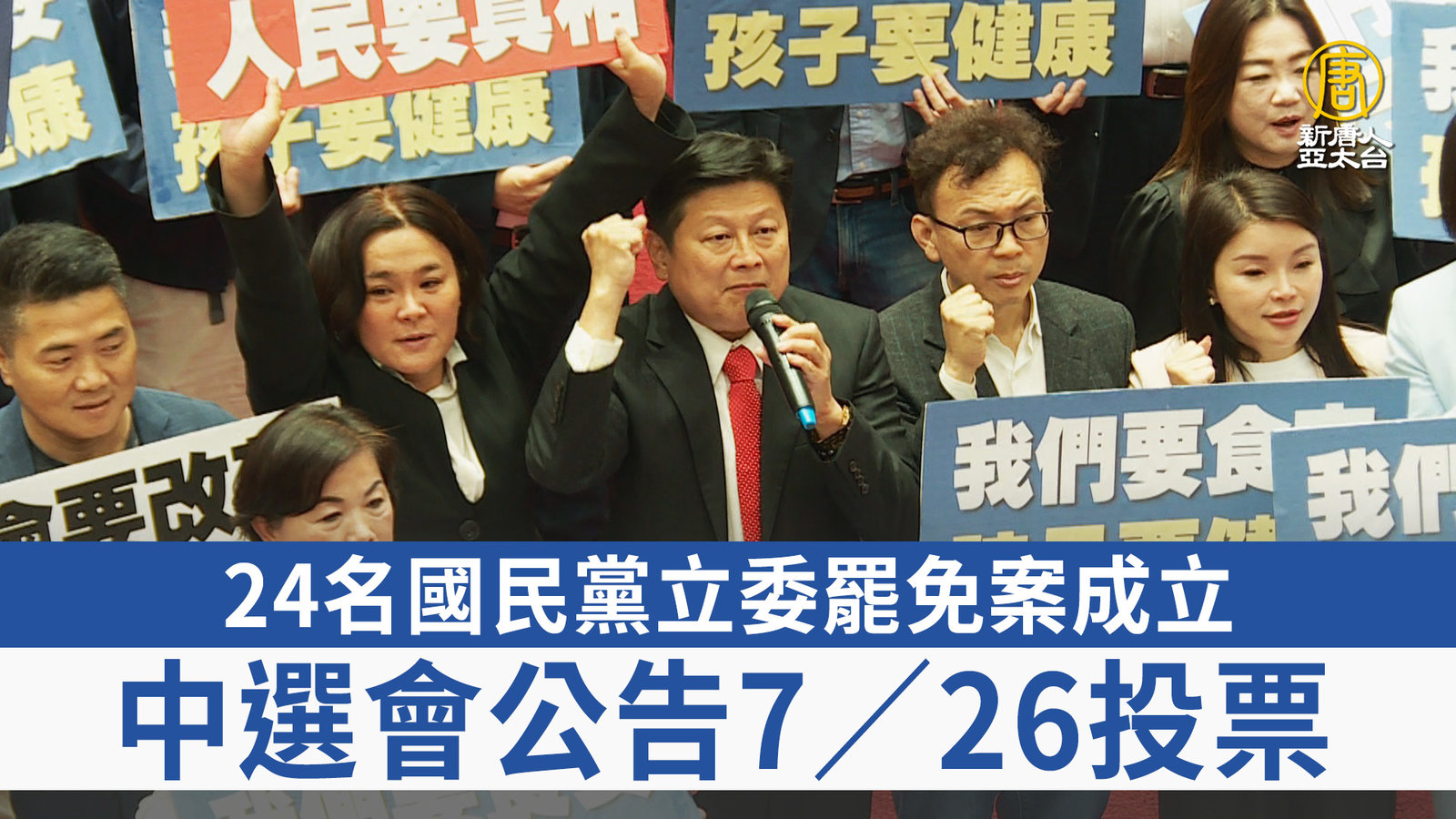 24名國民黨立委罷免案成立 中選會公告7/26投票