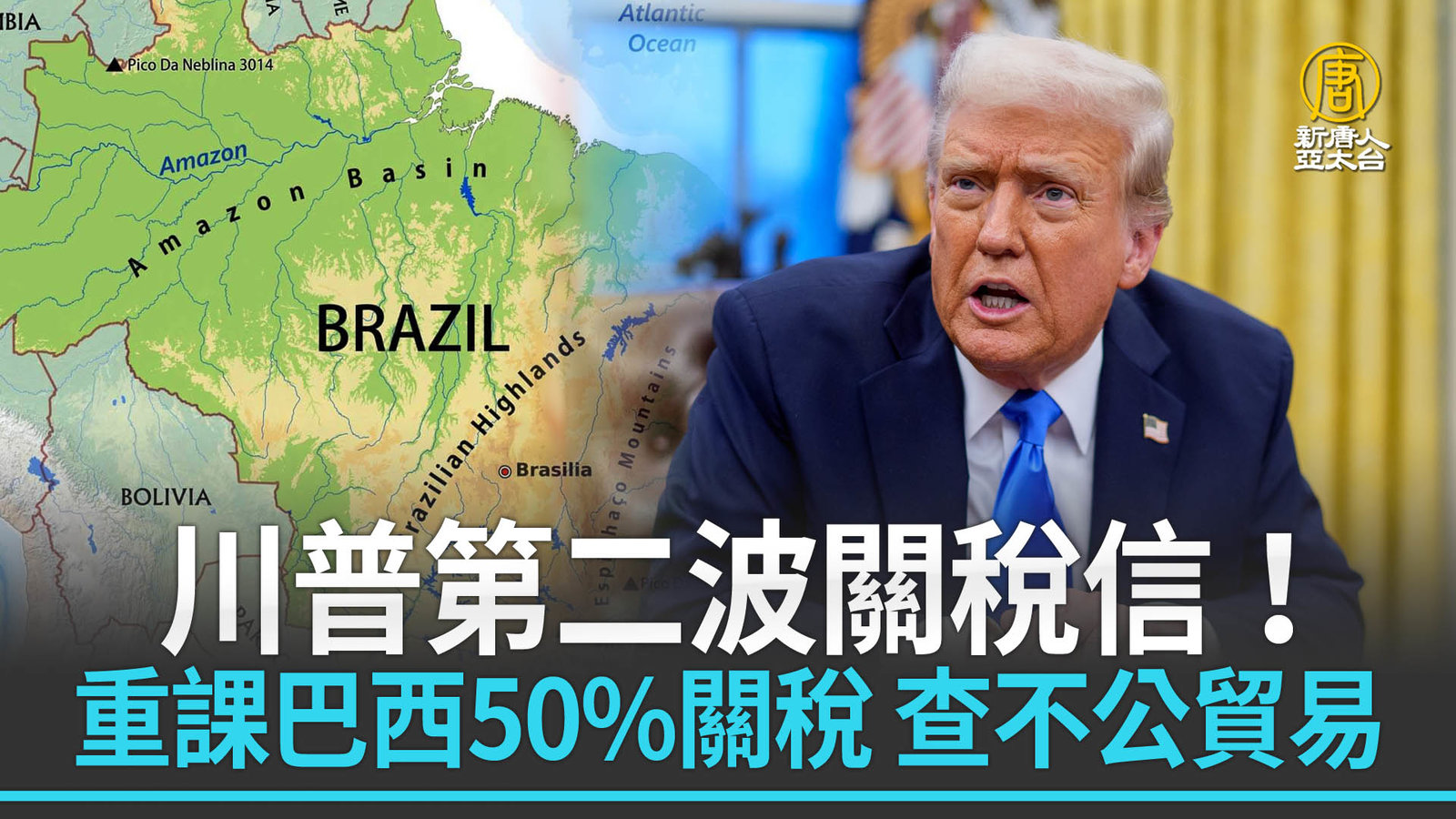川普第二波關稅信!重課巴西50%關稅 查不公貿易