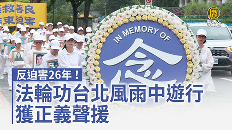 反迫害26年!法輪功台北風雨中遊行 獲正義聲援