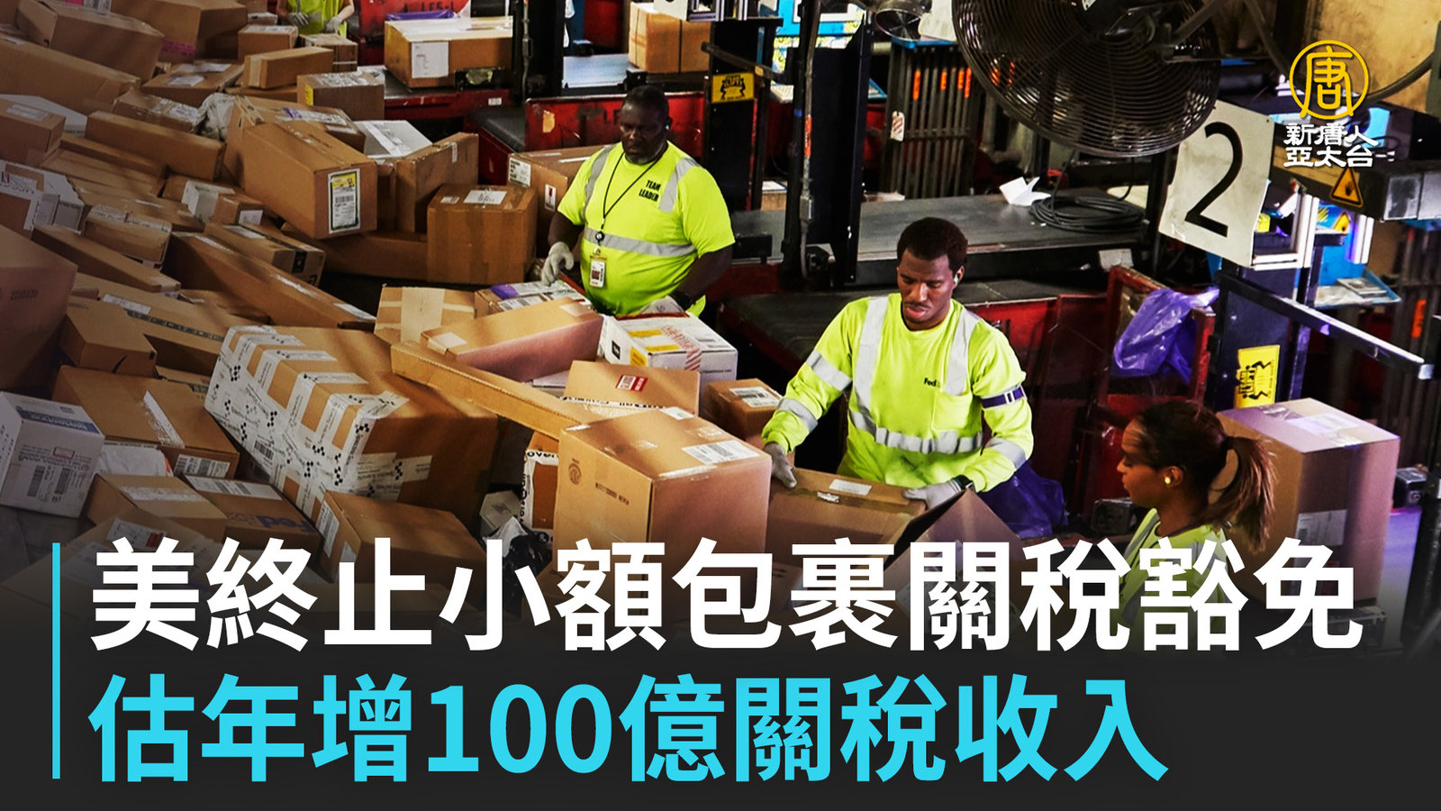 美國對於價值低於800美元的小額包裹,關稅豁免待遇,在29日起永久取消,並設置6個月過渡期。目前全球超過20個國家,已暫停向美國運送包裹。美國政府預估,將因新措施,年增100億美元關稅收入。 //www.ntdtv.com.tw/public/uploads/assets/2025/08/29/2025-08-29-68b1965e8beb9-220x123-169.jpg 小額包裹|小額豁免|關稅|川普2025-08-29 20:18:01