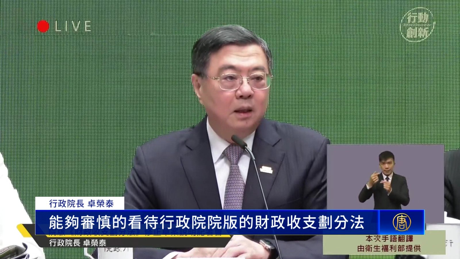 台灣行政院通過財劃法草案 卓榮泰喊話國會支持