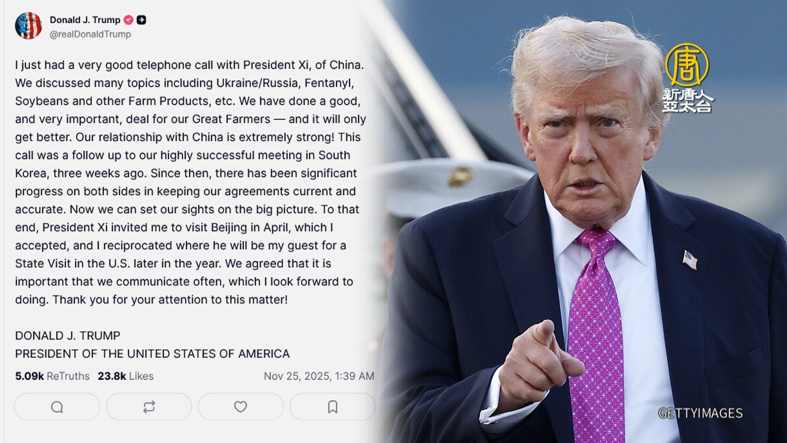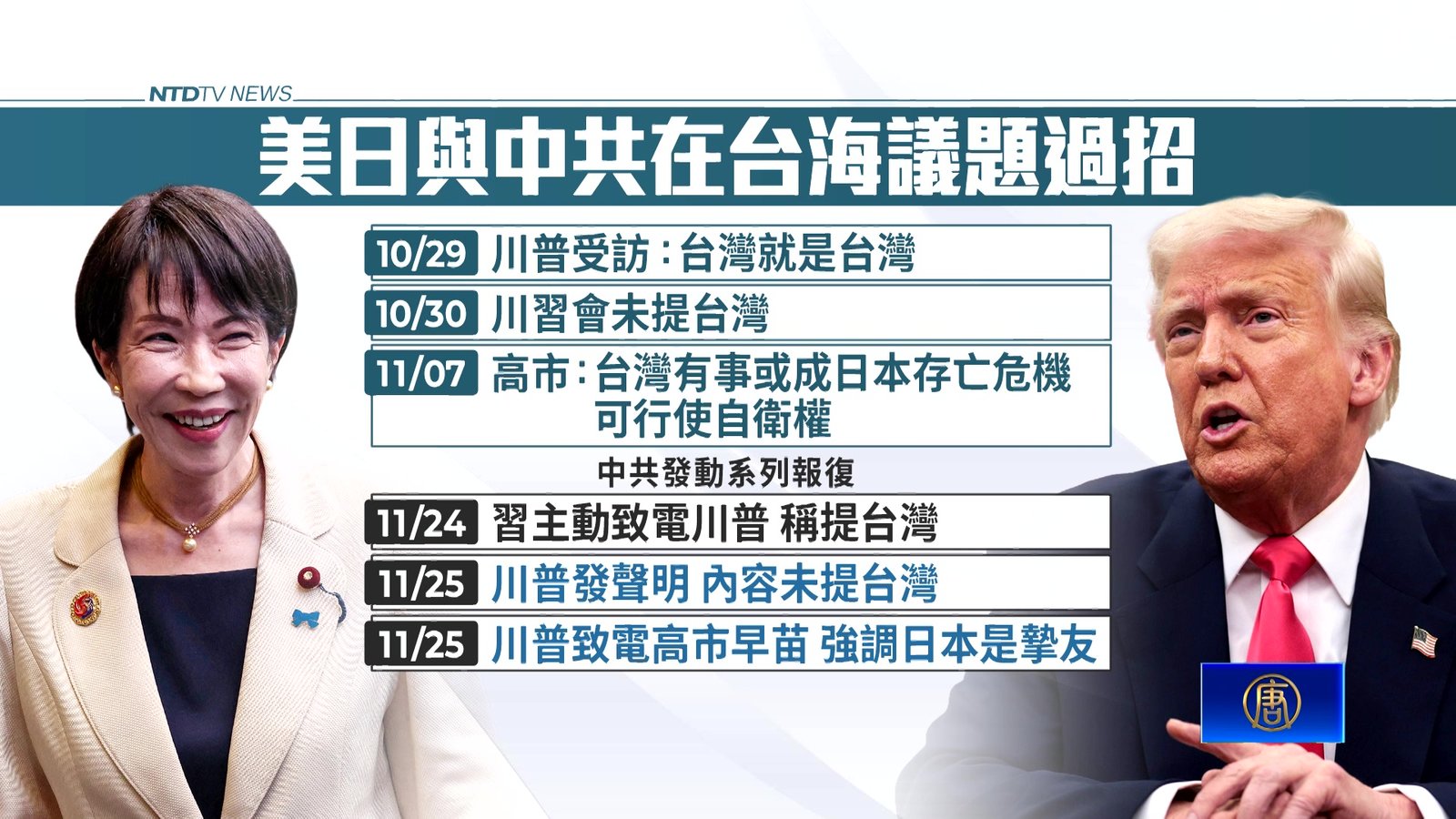 週一晚間,中共黨魁與美國總統川普通話,中共官媒聲稱,兩人對話觸及台海議題。但川普在通話後的發文中,對台灣是隻字未提。對於中共以二戰為由,為武力犯台找藉口,中華民國總統府發言人批評,中方敘事不實。外交部副部長吳志中也接受外媒訪問指出,川普對台灣的沉默表明,台灣並沒有被當作,談判籌碼。 //www.ntdtv.com.tw/public/uploads/assets/2025/11/25/2025-11-25-692594e4231ff-220x123-169.jpg 美中台|川習通話|台海2025-11-25 20:23:48