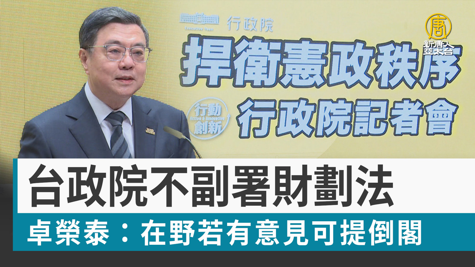 台政院不副署財劃法 卓榮泰:在野若有意見可提倒閣