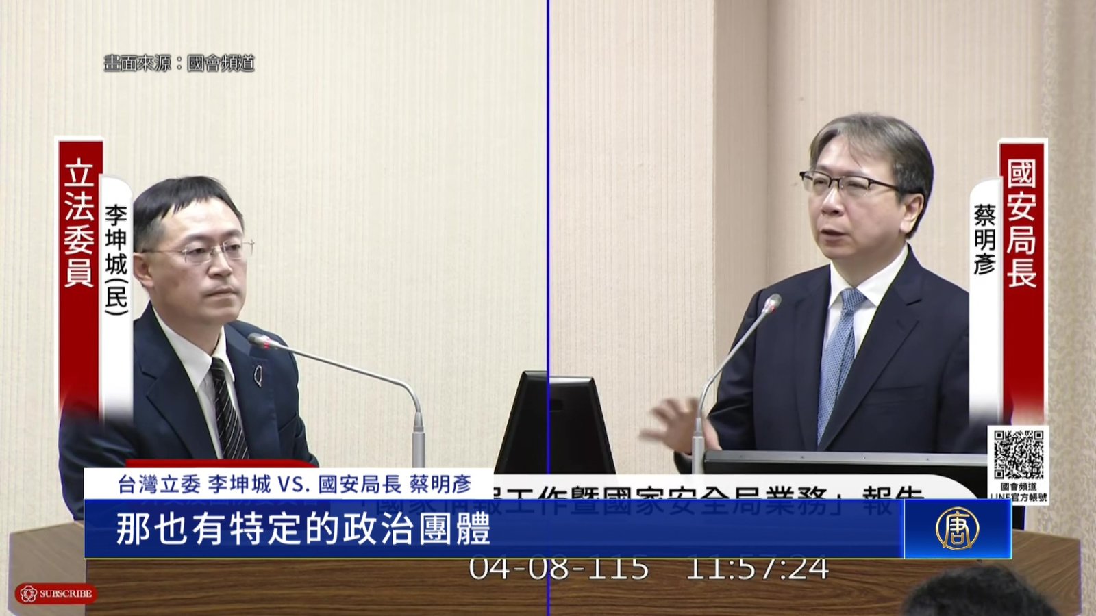 台灣將在年底舉行地方選舉,國安局防範中共透過複合式手段介選。近期,中國大陸籍配徐春鶯被反滲透法起訴案件受矚目。起訴書中披露的滲透樣態,引發社會高度關注,國會議員今天(8日)就此質詢國安局長。 //www.ntdtv.com.tw/public/uploads/assets/2026/04/08/2026-04-08-69d64371cefa7-220x123-169.jpg 中共統戰|中共滲透|徐春鶯2026-04-08 20:22:50