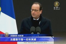 2015-11-28 21:34:18週五,為了追思巴黎恐襲的上百名遇難者,法國政府在巴黎的榮譽軍人院,舉行隆重的追悼儀式,法國總統歐蘭德在致詞時表示,一定要消滅伊斯蘭國恐怖組織。
