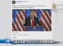 2017-01-12 21:23:38美國總統當選人川普今天在紐約召開選後首場記者會,除了聚焦川普與俄羅斯的關係,與川普的商業帝國。各家媒體也問到墨西哥築牆、歐巴馬健保、大法官任命等問題。而全球媒體更是同步直播,川普記者會,是社群網站的關鍵字第一名。