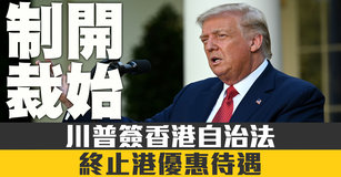 2020-07-15 07:42:30早安新唐人,先帶您關心,最新消息,美國總統川普在今天台北時間早上五點多召開記者會,宣布簽署《香港自治法案》生效,並簽署行政令,正式結束對香港的特別待遇。